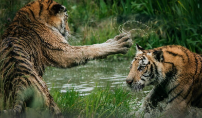 사자, 호랑이, 곰과 같은 사나운 동물들과 싸우는 꿈은 당신이 공격적이고 위압적인 사람들 사이에서 문제와 문제를 겪을 것이라는 암시이다.